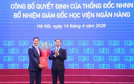 14/04/2026 - 17:09Ngày 14/4, Học viện Ngân hàng tổ chức Hội nghị công bố và trao quyết định bổ nhiệm PGS.TS Bùi Hữu Toàn - Bí thư Đảng uỷ, Nguyên Chủ tịch Hội đồng Học viện giữ chức vụ Giám đốc Học viện Ngân hàng từ ngày 15/4.