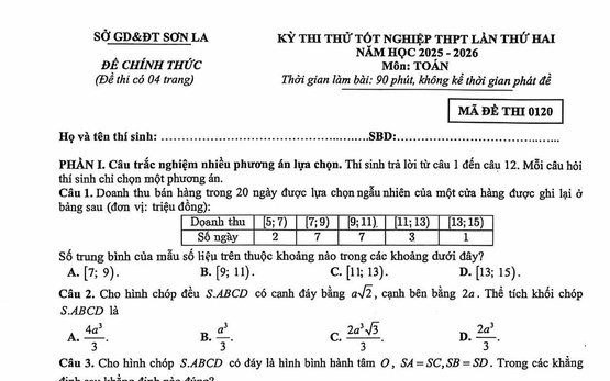 17/04/2026 - 14:22Dưới đây là đề thi môn Toán ở kỳ khảo sát thi tốt nghiệp trung học phổ thông do Sở Giáo dục và Đào tạo Hải Phòng xây dựng, thí sinh có thể tham khảo.