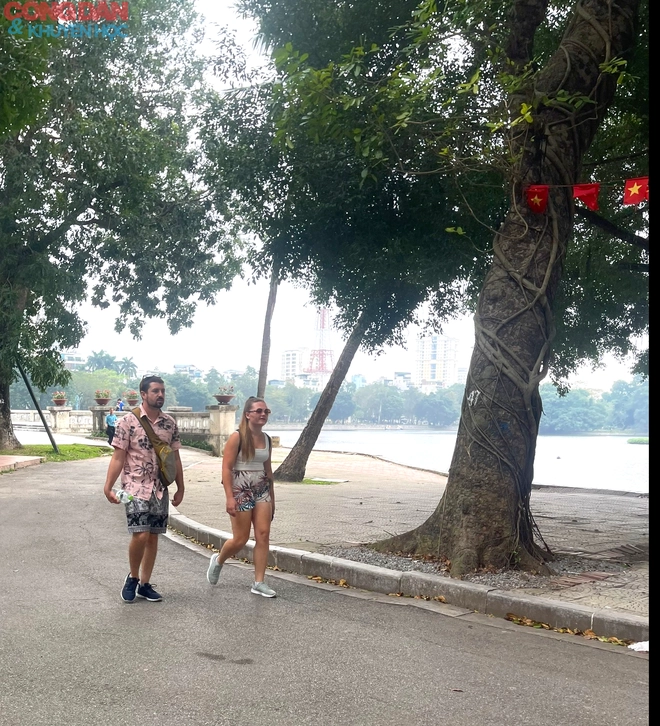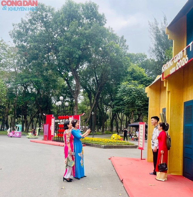 Không chỉ người dân Hà Nội, nhiều gia đình từ các tỉnh lân cận cũng lựa chọn công viên làm điểm dừng chân trong hành trình du xuân. Du khách quốc tế tản bộ quanh hồ, chụp ảnh và tỏ ra thích thú trước không khí Tết Việt giản dị nhưng ấm áp.