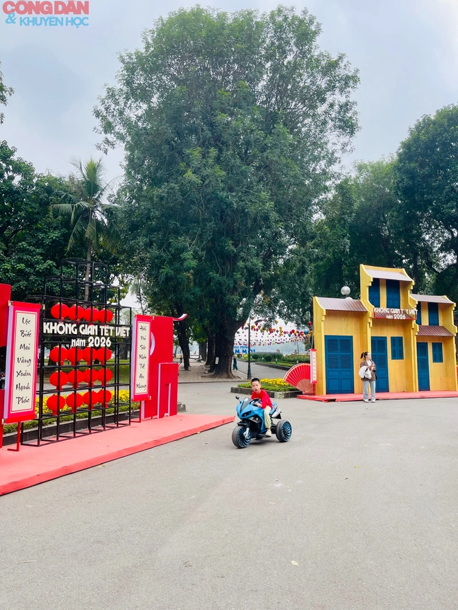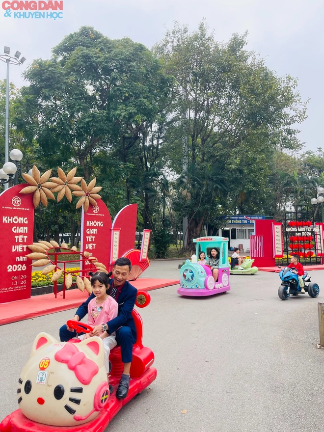 Giữa không gian xanh rộng mở, trẻ em vui chơi thỏa thích, người lớn thong thả dạo bước, sum vầy bên nhau, tạo nên một bức tranh Tết Việt giản dị mà ấm áp giữa lòng Thủ đô.