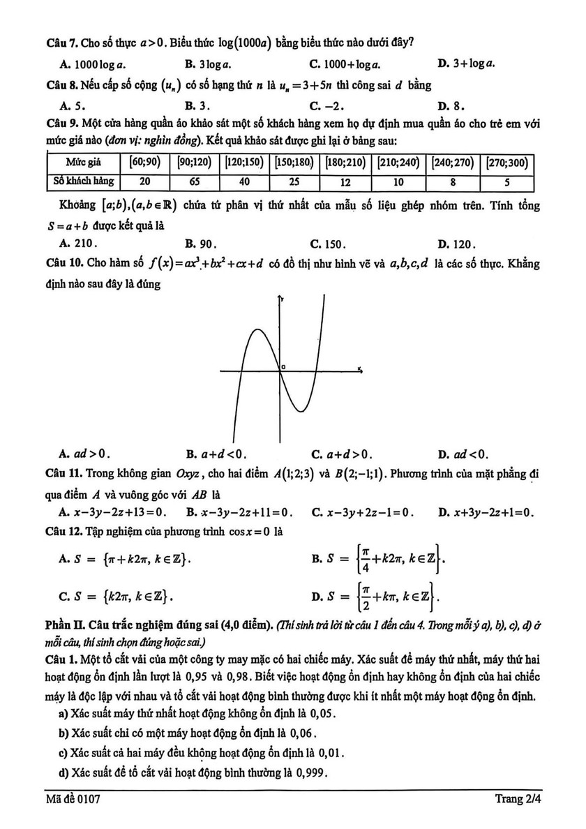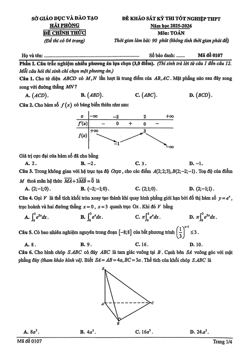 Dưới đây là đề thi môn Toán ở kỳ khảo sát thi tốt nghiệp trung học phổ thông do Sở Giáo dục và Đào tạo Hải Phòng xây dựng, thí sinh có thể tham khảo.