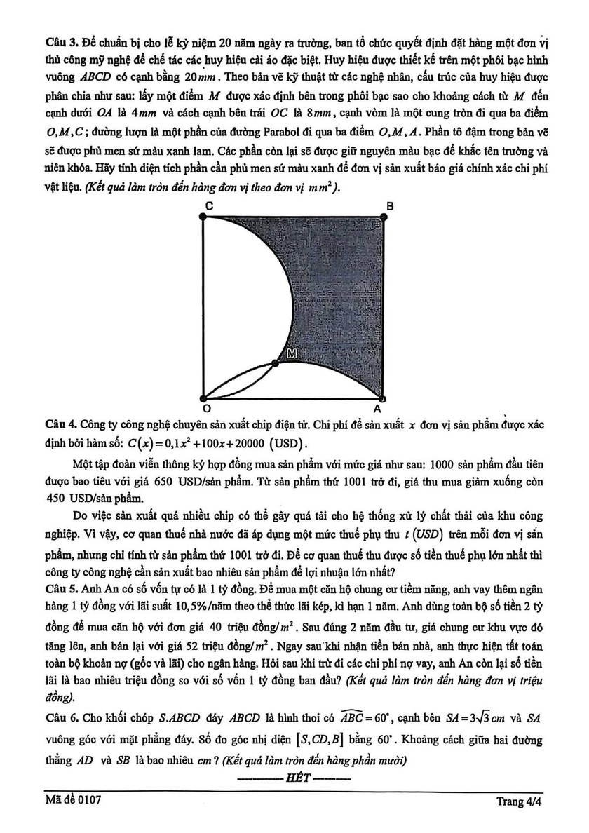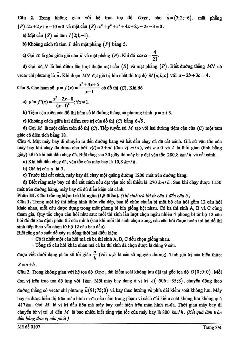 Đề khảo sát kỳ thi tốt nghiệp trung học phổ thông môn Toán của Sở Giáo dục và Đào tạo Hải Phòng như sau: