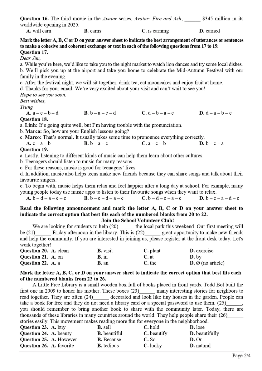 Đề thi thử vào lớp 10 môn Tiếng Anh của Sở Giáo dục và Đào tạo Bắc Ninh năm học 2026-2027 như sau: