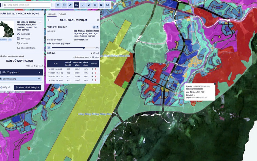 Bên cạnh đó, sản phẩm áp dụng các công nghệ mới và hiện đại như Công nghệ ảnh viễn thám, ảnh vệ tinh độ phân giải cao, siêu cao, ảnh từ UAV, Drone kết hợp với Trí tuệ nhân tạo không gian địa lý (GeoAI) để xây dựng các mô hình, thuật toán gồm mô hình GeoAI giúp tăng độ phân giải ảnh viễn thám từ độ phân giải trung bình (10m) lên cao (2.5m); mô hình GeoAI giải đoán, giám sát biến động hiện trạng sử dụng đất; mô hình GeoAI phát hiện, giám sát công trình, tài sản trên đất, giám sát xây dựng trái phép.