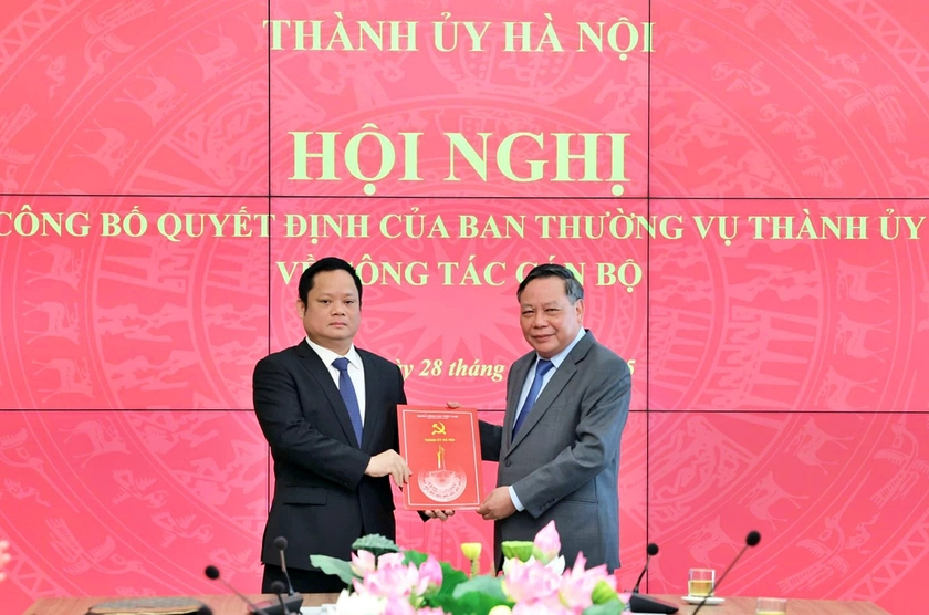 Ông Vũ Minh Tuấn nhận quyết định của Ban Thường vụ Thành ủy Hà Nội. Ảnh: TTXVN