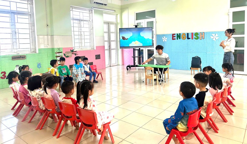 Một tiết học làm quen với tiếng Anh của học sinh Trường Mầm non Kim Chung (Hà Nội). Ảnh: NH