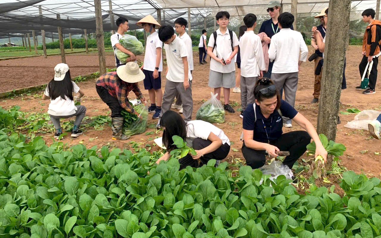 Trẻ nhỏ được dạy biết yêu thương, trân trọng những vườn rau nhỏ góp phần tạo ra nguồn thực phẩm sạch bằng sự trải nghiệm chăm sóc, nhổ cỏ. Ảnh: Trường Mầm non Hồ Tùng Mậu (Hà Nội)