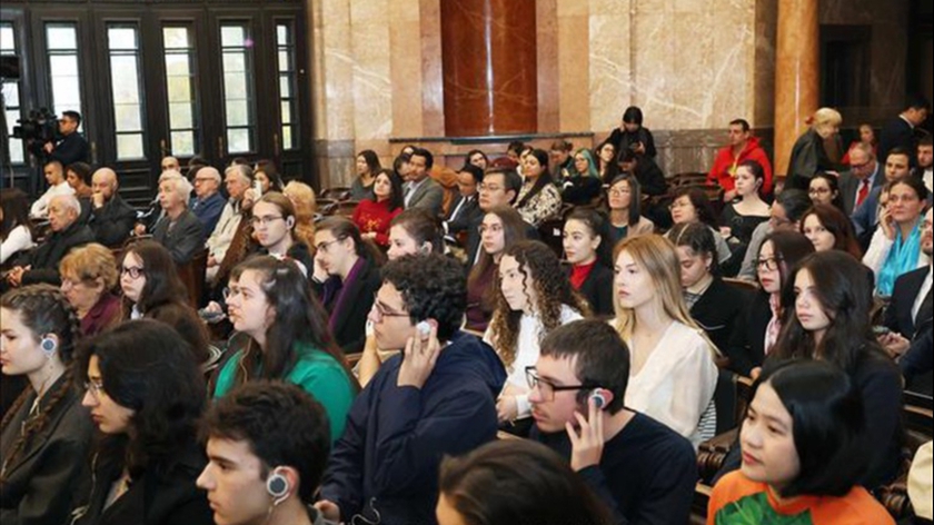 Sinh viên Đại học Sofia dự buổi phát biểu của Tổng Bí thư Tô Lâm. Ảnh: TTXVN