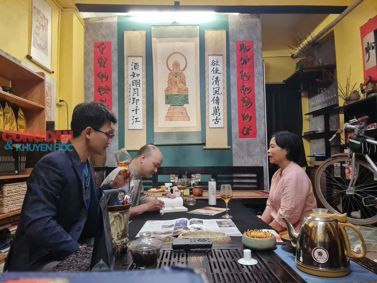 Một buổi sáng đầu xuân tại Hà Nội, khi phố phường vừa qua những ngày Tết rộn ràng, nhịp sống đô thị đang dần trở lại với guồng quay quen thuộc. Trong một con ngõ nhỏ yên tĩnh, không gian Thư trà quán của Trà nghệ gia Đỗ Công mở cửa từ sớm. Khác với những quán cà phê hay trà thất được trang trí cầu kỳ nhằm thu hút khách "check-in", nơi đây giữ cho mình một vẻ giản dị: vài bộ bàn gỗ thấp, những ấm trà đất nung, kệ sách nhỏ và mùi hương trà thoảng nhẹ trong không khí.