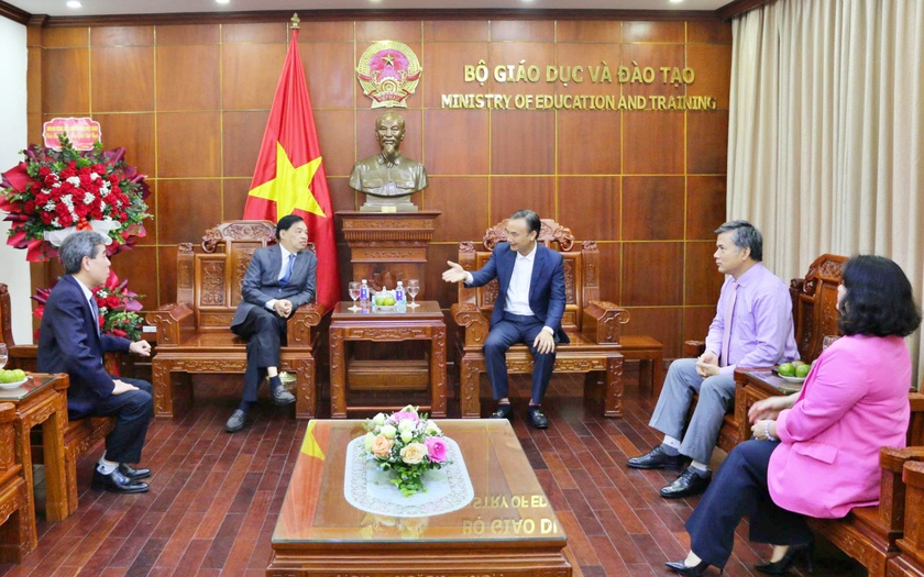 Đoàn đại biểu Trung ương Hội Khuyến học Việt Nam chúc mừng lãnh đạo Bộ Giáo dục và Đào tạo và các thầy cô giáo nhân Ngày Nhà giáo Việt Nam 20/11. Ảnh: Tuấn Anh