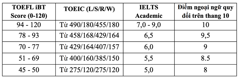 Trường Đại học Tài nguyên và Môi trường Hà Nội quy đổi 5.0 IELTS thành 8 điểm môn tiếng Anh
