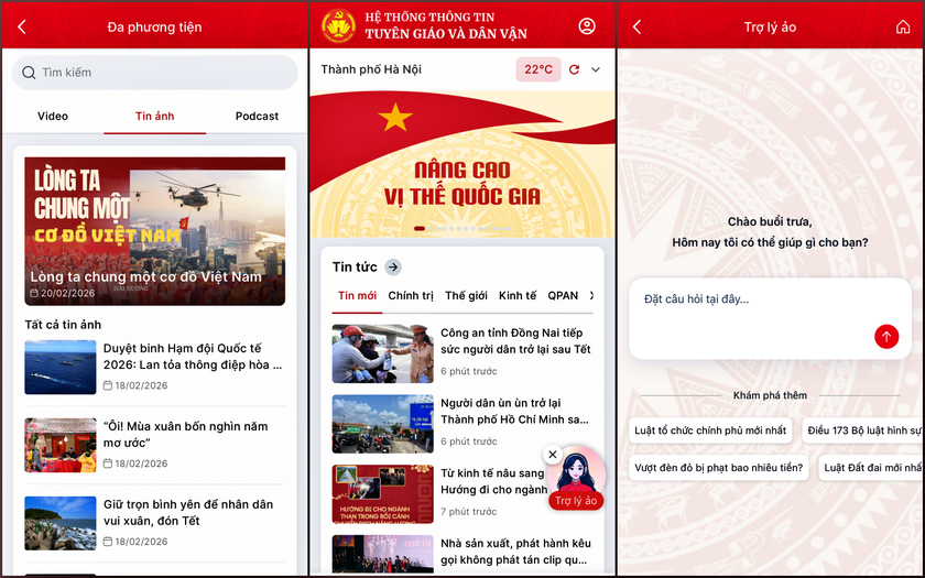 Trợ lý ảo AI: AI được kiểm soát bằng nguồn thông tin chính thống, bảo đảm tính chính xác, định hướng đúng và phục vụ hiệu quả công tác tuyên truyền, điều hành. Trợ lý pháp luật, trợ lý chính sách hỗ trợ hỏi-đáp chính sách, trả lời nhanh các thắc mắc về đời sống và chính sách bằng ngôn ngữ bình dân, dễ hiểu, hỗ trợ phân tích dữ liệu và dư luận xã hội. Từ hành vi người dùng, ứng dụng giúp phát hiện xu hướng, dấu hiệu bất thường, giúp cảnh báo sớm, nâng cao hiệu quả chỉ đạo, điều hành.