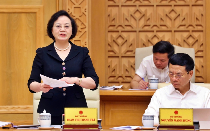 Bộ trưởng Bộ Nội vụ Phạm Thị Thanh Trà báo cáo tại Hội nghị. Ảnh: Báo Chính phủ
