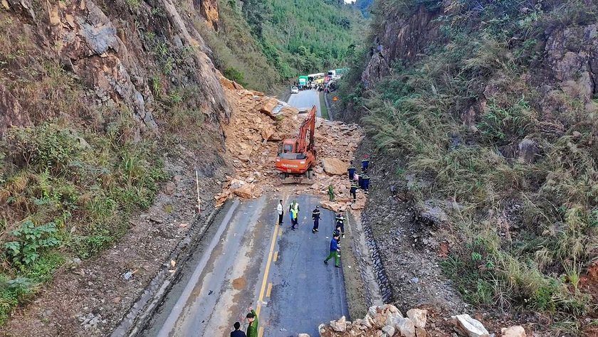 Mặc dù khối lượng không quá lớn, song do phải vừa tập trung cứu nạn vừa tổ chức hót dọn trong điều kiện địa hình phức tạp, công tác khắc phục gặp nhiều khó khăn. Hiện xúc lật đã cơ bản dọn gần xong một lối thông đường, tuy nhiên các đơn vị chức năng chưa cho phép thông xe ngay để bảo đảm an toàn tuyệt đối cho lực lượng cứu nạn và người tham gia giao thông.
