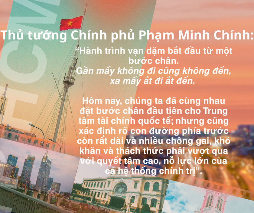 Lịch sử tài chính thế giới đã chứng kiến sự trỗi dậy của Luân Đôn thế kỷ 19, New York thế kỷ 20, và Singapore hay Thượng Hải những thập kỷ gần đây. Cách đây hơn một thế kỷ, Bến Nhà Rồng hay thương cảng Hội An đã từng là những cửa ngõ giao thương sầm uất, kết nối Việt Nam với thế giới. Hôm nay, chúng ta khởi đầu quá trình khơi lại dòng chảy thịnh vượng đó, với một tâm thế mới, với một công cụ mới - đó là tài chính, công nghệ, là chuyển đổi xanh, chuyển đổi số và quyết tâm cao, biến khát vọng thành sự thất, biến tiềm năng thành của cải vật chất.